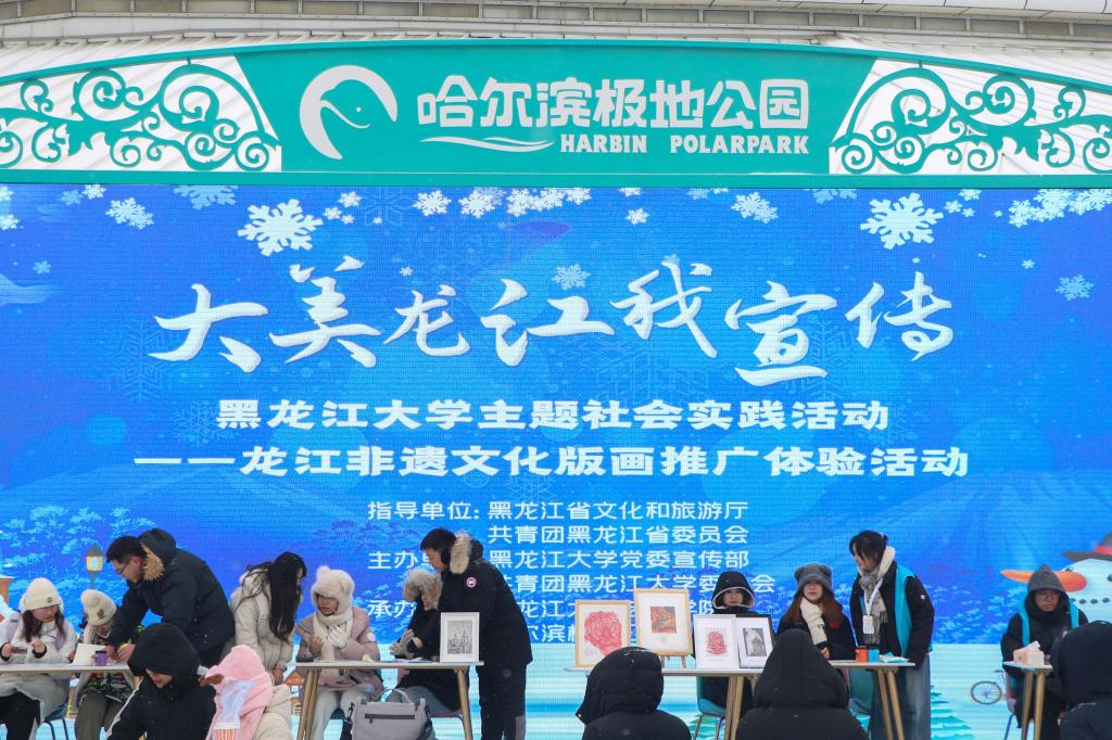 1月11日,由黑龙江省文化和旅游厅、共青团黑龙江省委员会指导,黑龙江大学主办的“大美龙江我宣传”龙江非遗文化版画推广体验活动在哈尔滨极地公园举行。校团委、艺术学院相关负责同志和师生代表参加活动。黑龙江版画流派的创作源于1946年从延安和其他解放区到东北的美术工作者开展的新兴木刻普及活动,以及在1958年北大...