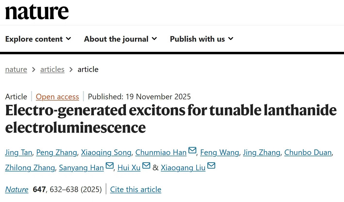 稀土纳米晶像大海中一座 “绝缘小岛”唯有光能飞跃“天堑”激发她绚丽多彩的光芒电却无路可达黑龙江大学许辉教授团队与合作者在“小岛”周围架起无数有机“光电桥梁”天堑变通途让“电激发绝缘体发光”的不可能变为可能北京时间2025年11月20日这项被团队打磨了十四年的研究成果以“捕获电生激子实现可调谐的镧系纳米晶电...