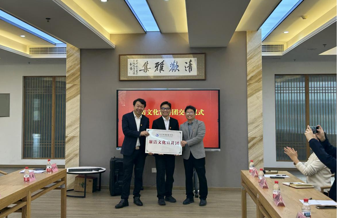 12月18日上午,我校廉洁文化宣讲团在图书馆传习馆举行了交接仪式。学校党委副书记、纪委书记蔡东宝,校纪检室、团委、教辅党总支、通识学院(筹)等相关部门负责人及宣讲团成员代表,共同见证这一时刻。