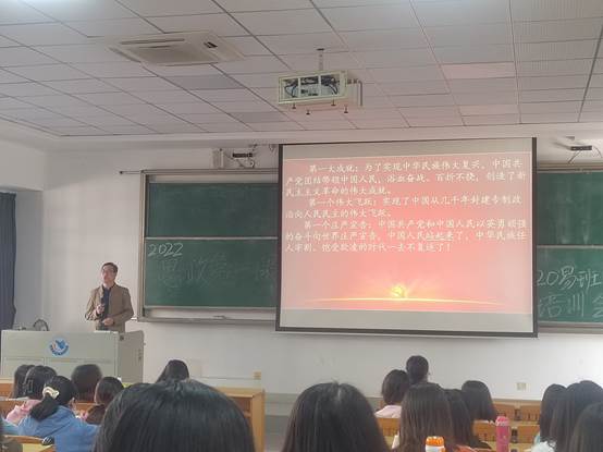 刘忠洋书记以“总体把握、准确领会党的十九届六中全会的丰富内涵和核心要义”为主题展开,向同学们讲述了十九届六中全会的基本情况和主要内容。课堂围绕中国共产党的宗旨和目标,紧扣十九届六中全会习近平总书记的工作报告和两个重要决议,以四件大事、四个伟大成就、四个伟大飞跃、四个庄严宣告为核心概括了在中国共产党的领导下,中国取得的辉煌成就和社会的巨大变化。进一步提升了同学们对党的认识、对国家的热爱之情,也进一步明确了当代大学生的责任与担当。