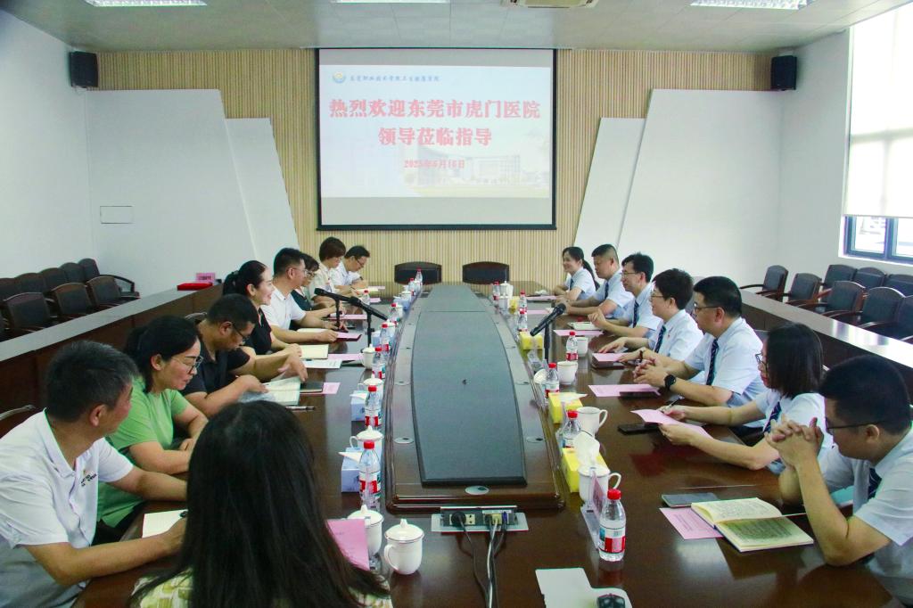 虎门医院党委书记杨伟琪等一行7人在学院领导班子的陪同下,首先参观了学院的实训楼理实虚一体实训室、P2实训室、固体制剂GMP模拟车间、康复实训室、药植园以及大学生党团活动中心等场地,双方对实训室共建进行了深入探讨。