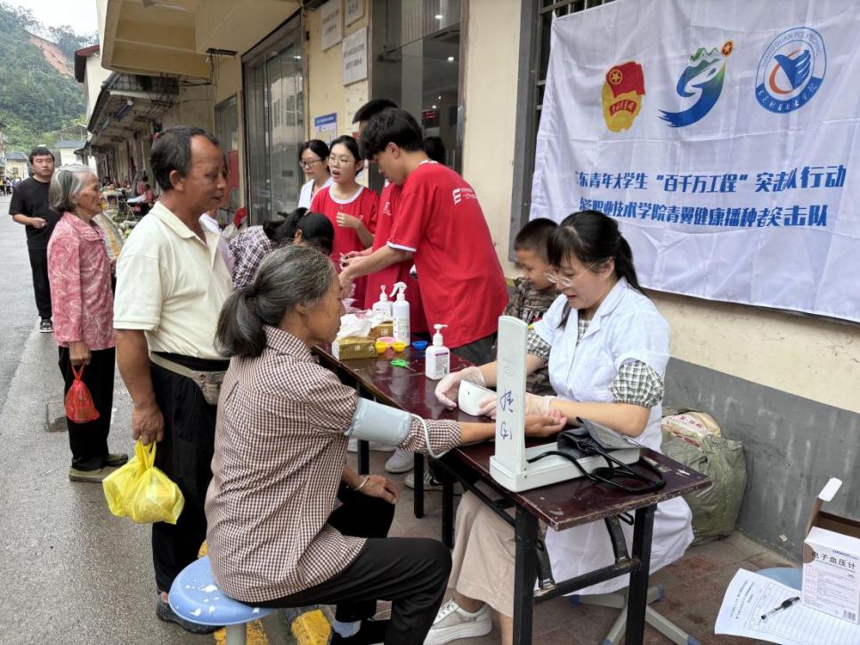 7月4日至11日,在我校卫生健康学院叶艳娜、杨雪芳、谢龙三位老师的带领下,“青翼健康播种者”突击队一行10人深入粤东粤北基层,在揭阳市惠来县葵潭镇、韶关市武江区江湾镇开展健康惠民活动。该支团队创新采用“专业技术+数字医疗”服务模式,累计服务群众300余人次,为乡村振兴注入满满健康活力。