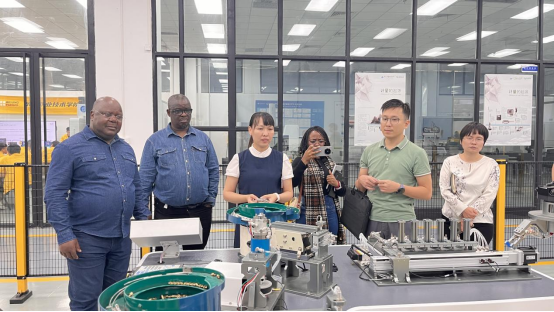 来宾一行先后参观了我校机器人技术平台、智能终端测试与制造实践中心和数字化智造工厂。参观过程中,电子信息学院刘洋、范启亮老师以及智能制造学院陈妹琼老师分别从实训条件建设、课程体系设置和理实一体化教学模式等方面进行了介绍。我校完善的实训条件、系统的课程设计以及丰富的涉外培训经验,得到了来访嘉宾的一致认可。