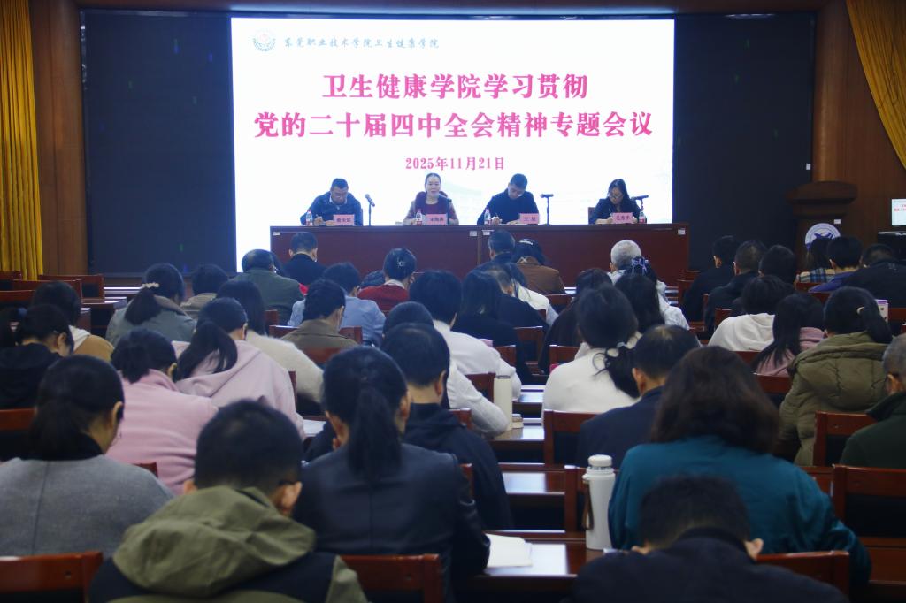 11月21日,我校卫生健康学院召开学习贯彻党的二十届四中全会精神专题会议。会议由卫健院副院长毛秀华主持,全院教职工参加。