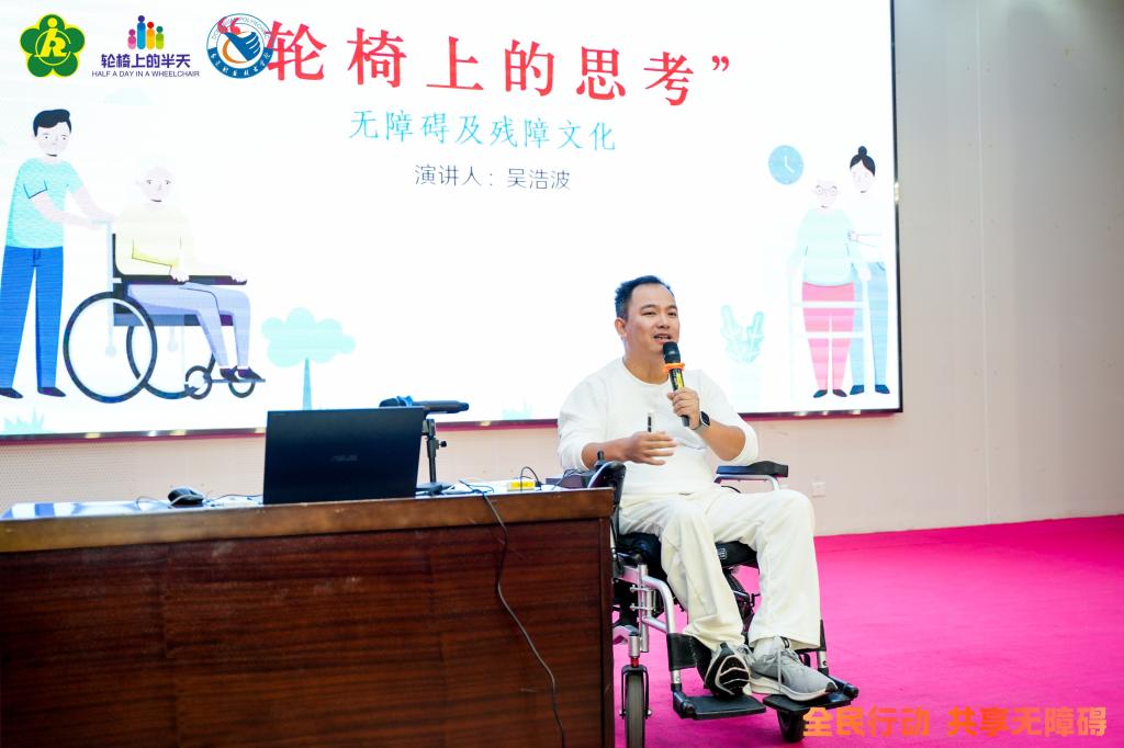 活动现场,吴浩波以个人经历和大量残障群体的日常故事为引,向学生系统讲解无障碍建设背后的理念。他指出,无障碍不仅是设施,更是每个人都有尊严生活的社会基础;校园可以成为无障碍理念普及的起点。讲座引发学生强烈共鸣,许多学生第一次意识到,无障碍关乎每个人的未来,而不仅仅是“特殊群体的需要”。