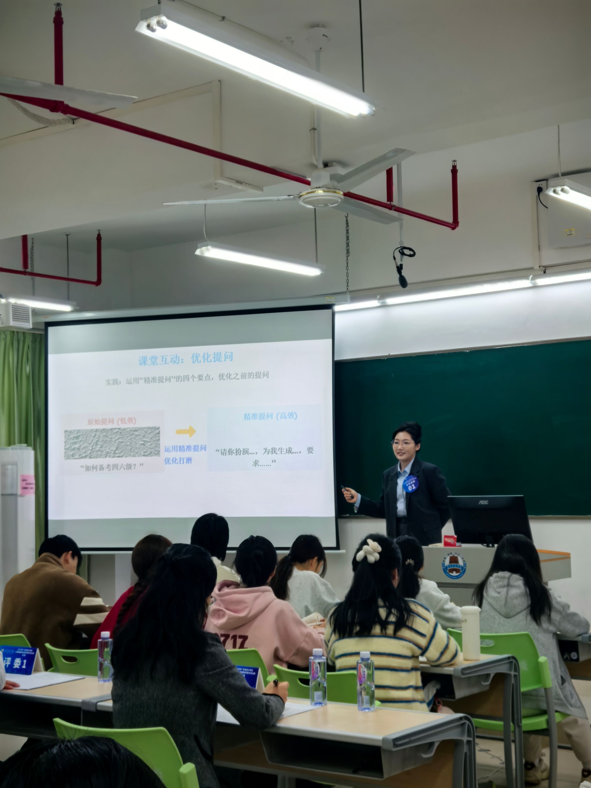决赛中,莫欣妍老师从“大学生学习与创新心理”模块中抽选内容,教学重点聚焦在AI时代大学生面临的新型心理挑战。她通过典型案例导入,设计“AI提问模拟实验室”等互动环节,直观展示技术工具对学习策略的优化作用,有助于缓解学业焦虑。