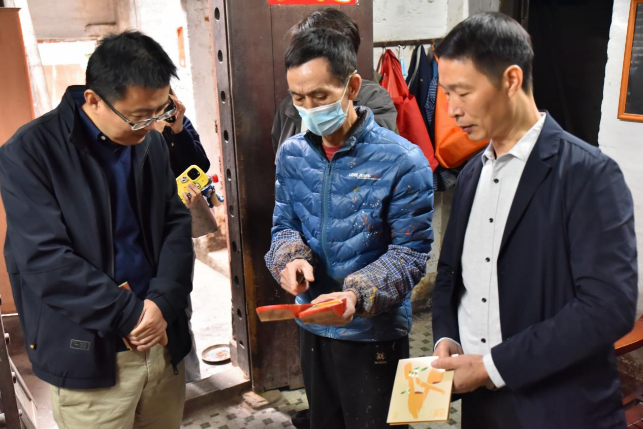 12月26日下午,我校机关党总支书记刘明、商学院(筹)党组织负责人张文利带领“新手村”次元创业项目团队来到石龙镇“梁锦泉红漆木屐描花”门店,开展了一次以非遗文化为切入点的深度调研。