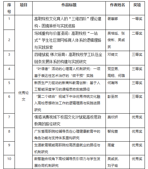 近日,高校思想政治工作队伍培训研修中心(华南师范大学)和教育部高校辅导员培训和研修基地(华南师范大学)公布了2025年广东高校思想政治工作论文、案例、网络课程推选征集活动评选结果,我校获一等奖2项、二等奖5项、三等奖11项、优秀奖7项。
