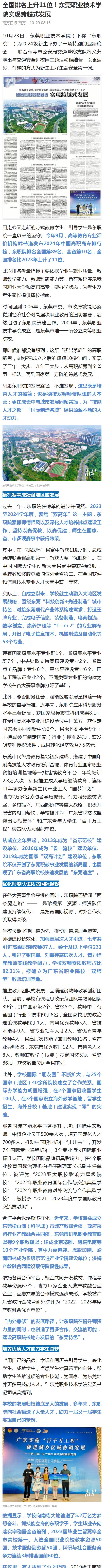 【南方+】全国排名上升11位!东莞职业技术学院实现跨越式发展