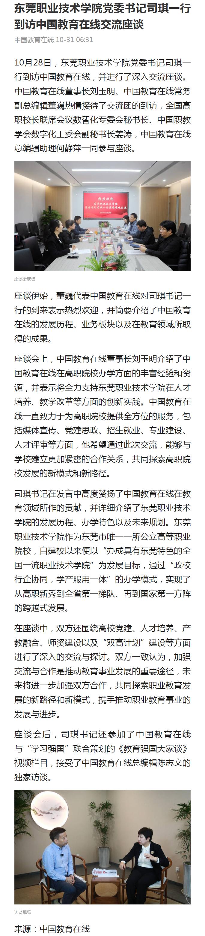 【中国教育在线】东莞职业技术学院党委书记司琪一行到访中国教育在线交流座谈
