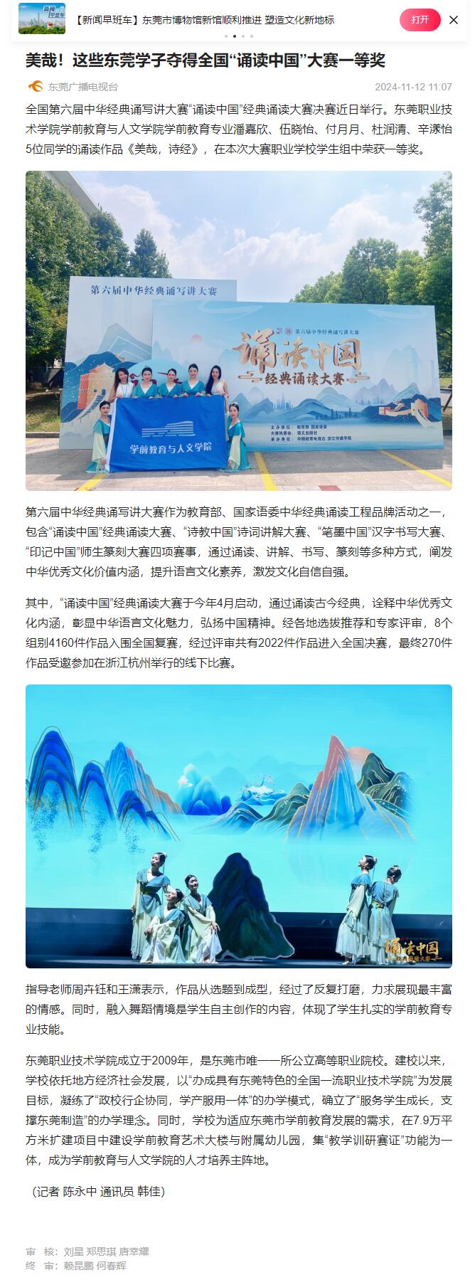 【知东莞】美哉!这些东莞学子夺得全国“诵读中国”大赛一等奖