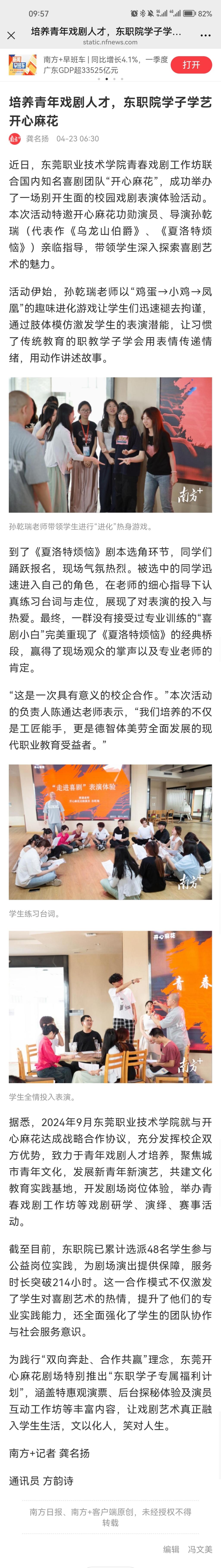 【南方+】培养青年戏剧人才,东职院学子学艺开心麻花