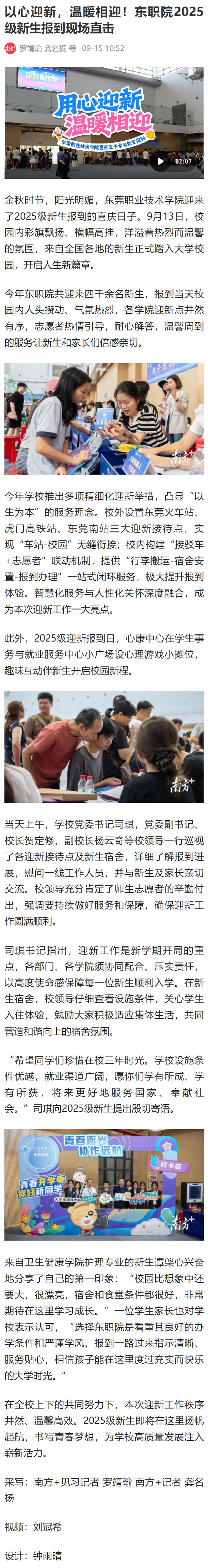 【南方+】以心迎新,温暖相迎!东职院2025级新生报到现场直击