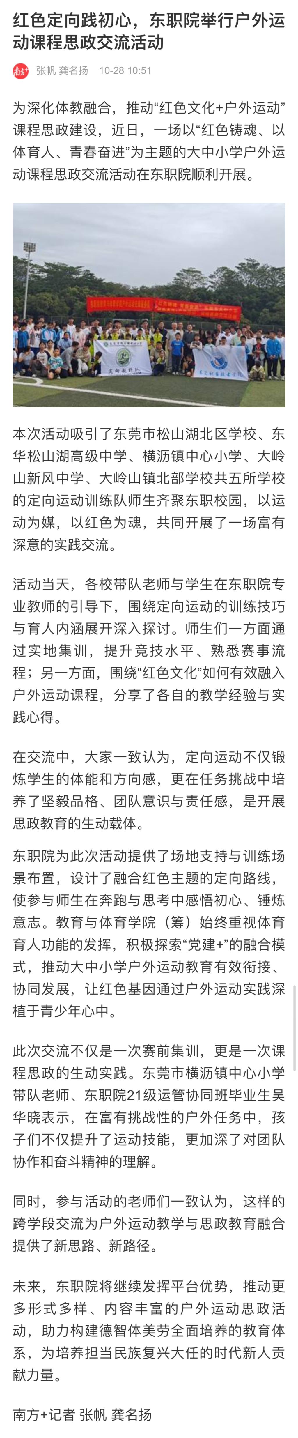 【南方+】红色定向践初心,东职院举行户外运动课程思政交流活动