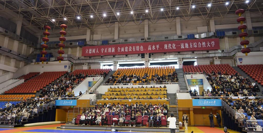 雷新宇同学作为新生代表发言。他提到,来自五湖四海的同学们正是因为对知识的渴求,在这里重圆了自己的大学梦。期待大家通过自己的努力,在这个新起点上实现新的梦想,与黑龙江大学一起创造辉煌。