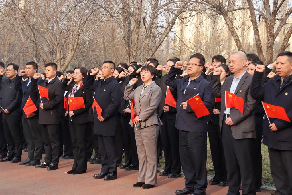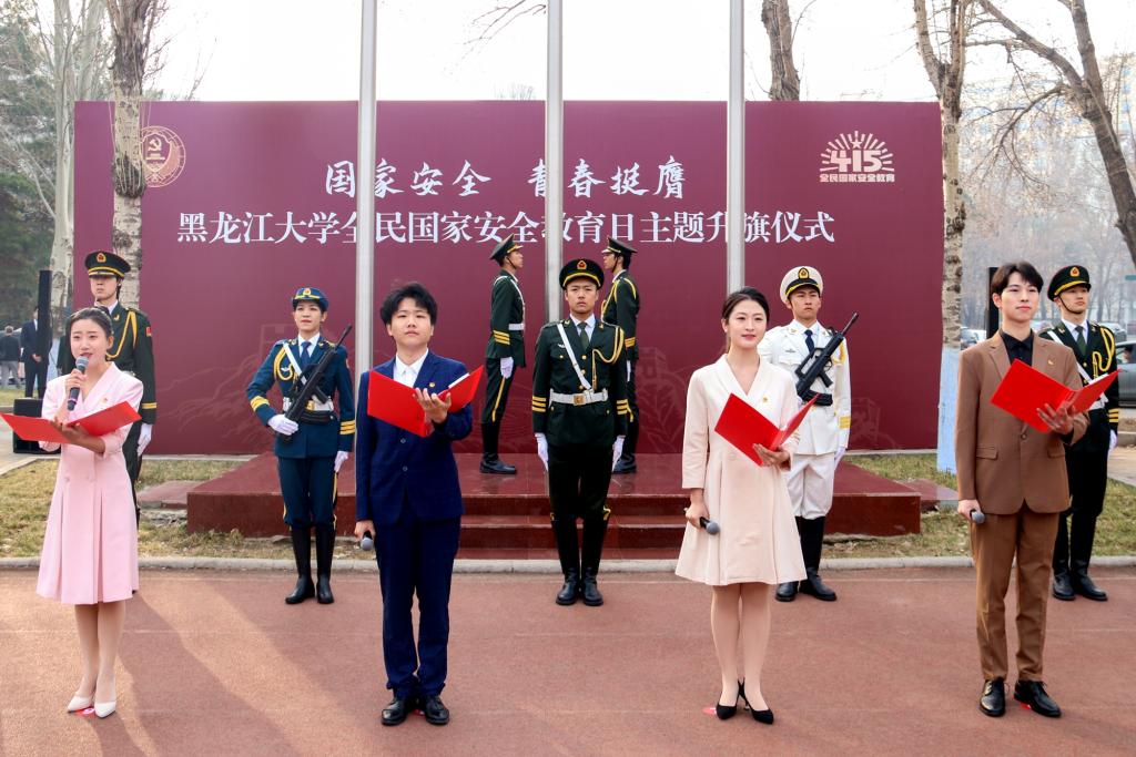 在宣誓环节中,全体师生,右手举拳,在国旗下庄严宣誓,“坚定不移践行总体国家安全观,牢固树立国家安全意识”的铮铮誓言响彻在黑大校园。