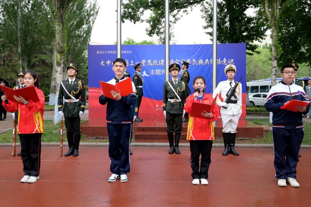 7时30分,“大中小学同上一堂思政课—铸牢中华民族共同体意识”主题升旗仪式于联通广场正式开始。我校青年学生宣讲团成员、哈尔滨市第七十三中学校学生代表以及马克思主义学院教师分别进行了微宣讲和诗朗诵。
