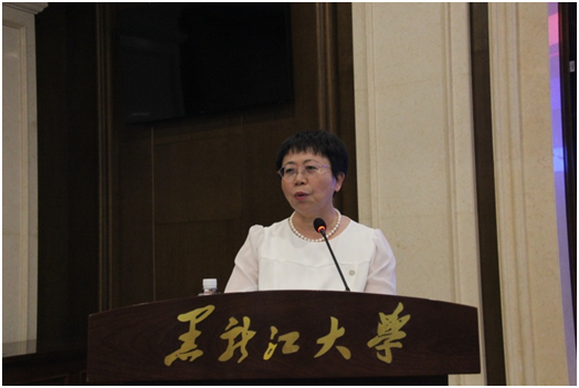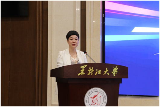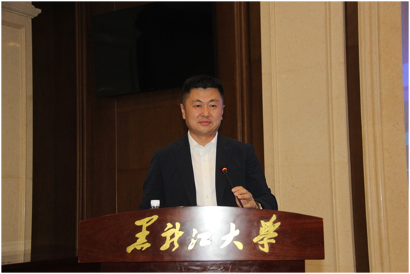 王敬波校长在讲话中介绍了学校的发展情况,向校友对母校的支持和奉献、向社会各界对黑龙江大学的关心与关注表示衷心的感谢。她指出,黑龙江大学83年的办学历史,就是83年的对俄办学史,在俄语高层次人才培养模式创新、培养体系构建、培养规模壮大等方面开创了数个“新中国第一”和“国内唯一”。鲜明的对俄办学特色使黑龙江大学立于中国高等教育版图,拥有彪炳史册的成就和不可比拟的优势。学校每一项成就的取得,都离不开广大师生、校友的鼎力支持。“全体黑大人是牢不可破的命运共同体”这一共识,在一代代黑大人的共同奋斗中被践行和印证。她表示,校友终身学习支持计划的启动与施行,既是黑龙江大学作为高等教育机构义不容辞的使命担当,也是学校遵循反哺校友、服务校友的初心,为校友搭建终身学习、赋能发展的平台,从而更好地推动和实现校友与母校双向奔赴、合作共赢。王敬波校长特别感谢了出席启动仪式的企业家代表。她说,黑龙江大学是名副其实的龙江人民子弟校,服务龙江是学校的第一使命,服务龙江企业更是黑大人当仁不让的责任。学校希望自身众多的科研成果能够为企业发展服务助力,同时也希望以企业为师,互相学习,加强合作,共同成长和进步。通过校企合作推进产学研用一体化的积极实践,更好促进高校履行人才培养、科学研究、服务社会、文化传承、国际传播的大学使命。