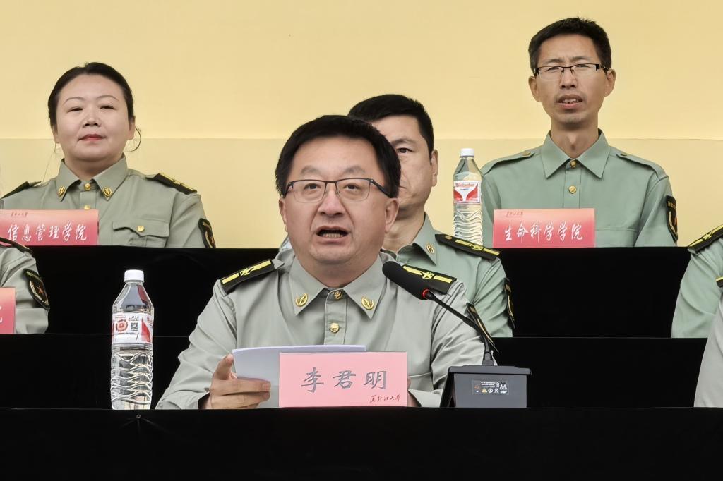校党委副书记、军训师政委李君明做2024级学生军训总结讲话。他代表学校向全体参训师生表示热烈的祝贺和诚挚的慰问,向在军训中涌现出的先进集体和先进个人表示衷心的祝贺。他指出,全体参训师生按照军训师的要求,以饱满的热情、昂扬的斗志、严谨的态度投入到军训中,安全、圆满、出色地完成了各项军训任务。他希望同学们珍惜军训成果,在今后的学习和生活中,继承发扬人民军队的好作风、好传统、好品德,继续保持严明的组织纪律性和饱满的学习、工作热情,秉承“志存高远,爱国奉献,艰苦奋斗,自强不息”的黑大精神,勤奋学习,求实创新,以奋斗姿态书写中国式现代化挺膺担当的青春篇章。