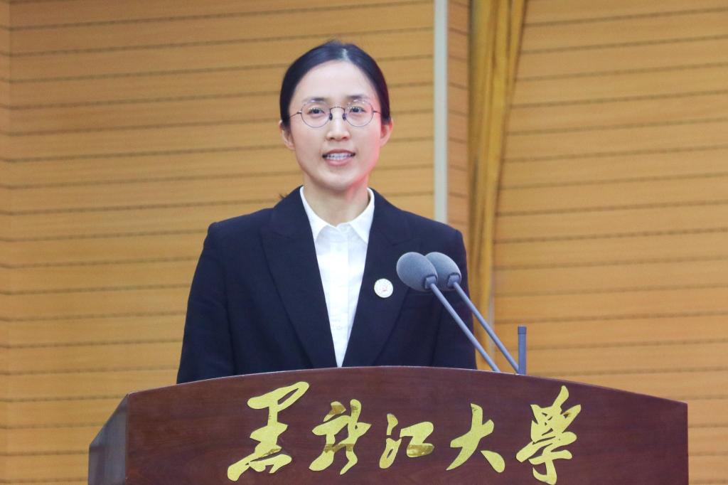 文学院教师郭黎婷作为新教职工代表发言。她分享了自己入职以来的教学心得,表达了对教师职业的深厚感情。她表示,教学与科研之间的平衡对于新教师而言是一个挑战,今后要在历练科研能力的同时将科研成果应用于课堂教学,将自身的研究专长与学校的办学特色相结合,和学校实现双向奔赴,更好地服务于龙江的现代化建设。