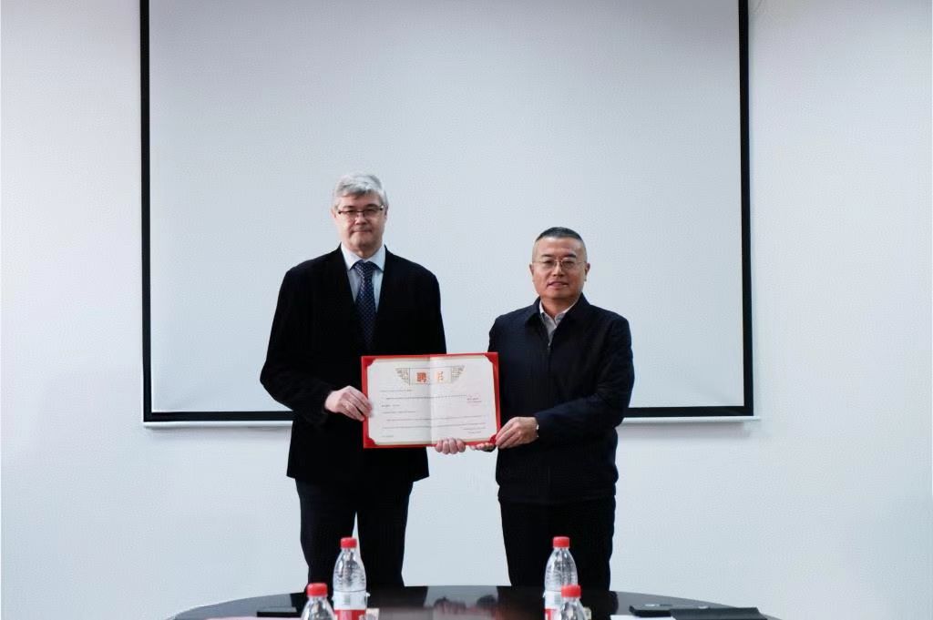 研究生院院长罗跃军为Dmitry Olegovich Zharkov教授颁发“生态学学术学位博士研究生合作导师”聘书。