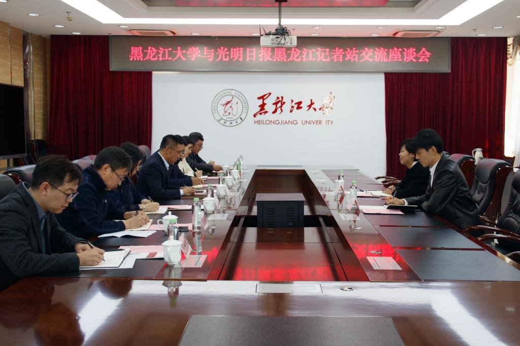 10月24日下午,我校与光明日报黑龙江记者站交流座谈会于主楼A802会议室召开。光明日报黑龙江记者站负责人张士英、记者胡沛然,校党委书记迟宝旭,党委宣传部、社会科学处、历史文化旅游学院、马克思主义学院、满语研究院、俄罗斯研究院等单位相关负责同志参加座谈会。