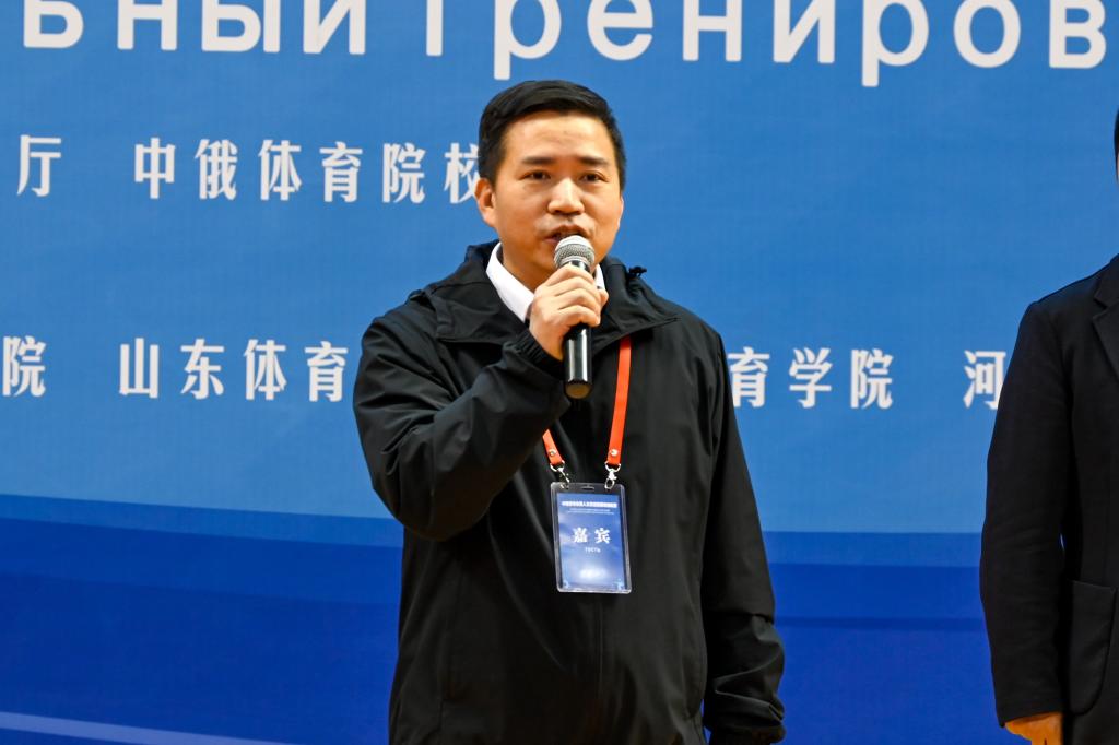 于长学在致辞中代表教育部中外人文交流中心,向黑龙江省教育厅、黑龙江大学、首都体育学院以及中俄体育院校联盟成员院校为筹备和举办此次训练营而付出的辛劳表示崇高的敬意。他指出,人文交流是加强中外人民交流的重要手段。在被誉为“中国俄语人才培养摇篮”的黑龙江大学举办中俄青年体育人文交流及排球训练营,“以球为媒”搭建中俄排球领域青年人文交流平台,开展训练和比赛。两国近80位学生运动员和教练员在训练场上互学互鉴,在比赛场上全情付出,留下了一个个矫健的身影,一幅幅难忘的画面。活动的举办必将为持续促进两国排球人才的培养以及两国青年增进理解、缔结友谊发挥重要的作用。教育部中外人文交流中心将全力支持中俄体育院校联盟的发展和中俄同类大学联盟工作,为增进两国体育及其他领域教育合作和人文交流,助力深化中俄关系发展作出新的贡献。