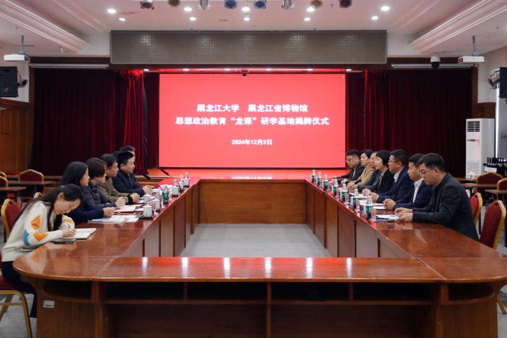 12月3日,我校与黑龙江省博物馆共建思想政治教育“龙课”研学基地揭牌仪式在黑龙江省博物馆举行。黑龙江省博物馆党委书记、馆长覃劲,黑龙江省博物馆党委副书记、副馆长佟国波, 黑龙江省博物馆副馆长陈禹、杨大鹏,校党委副书记刘凤影,校党委常委、宣传部部长杨其滨,黑龙江省博物馆相关部门、学校相关职能部门负责同志参加仪式。