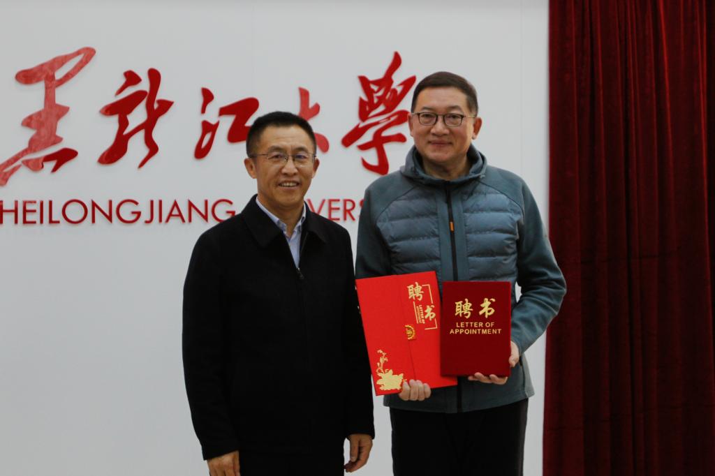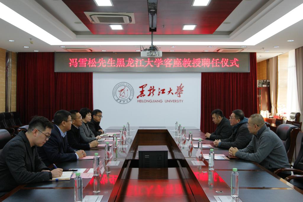 讲座开始前,学校在主楼A802会议室举行了冯雪松先生黑龙江大学客座教授聘任仪式并进行座谈。与会双方围绕融媒体实验室平台建设、科研成果与优秀名师宣传和相关主题策划等方面达成了合作意向。校党委书记迟宝旭为冯雪松颁发“黑龙江大学新闻传播专业客座教授”“黑龙江大学新闻与传播硕士专业学位行业导师”聘书,校党委副书记刘凤影接受冯雪松先生赠书。