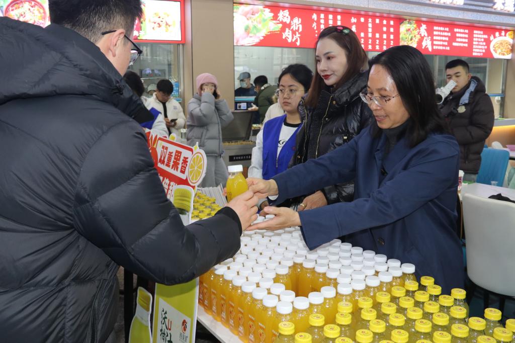 在“邕抱老铁 互换冬天”互动专区,美食品鉴、特产发放等特色活动吸引了众多学子驻足,目不暇接的南宁特色美食散发着诱人的香气。南宁以其独特的地域特色,孕育出了沃柑汁、东方茉莉茶、酸嘢等美食。同学们满怀热情地穿梭于各个摊位之间,品味独具特色的沃柑汁、酸嘢、茉莉花茶……沉浸在美食带来的愉悦和满足中。大家纷纷表示:“品尝了来自南宁的特色美食,是与北方完全不一样的感受。不一样的味道,不一样的做法,却是一样的人情。鲜美食物吃入口中,一股暖意便在心中升腾,在零下二十摄氏度的黑大校园中,品尝一口南宁特色就是极致享受。”