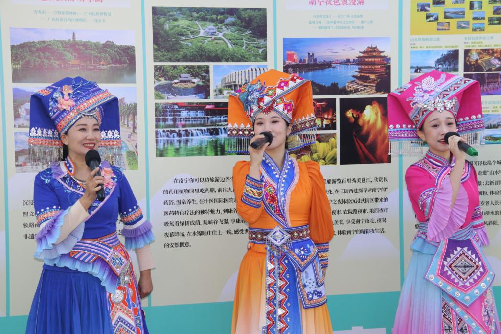 从山清水秀的“绿城”来到银装素裹的“冰城”,来自南宁快闪活动组的演员们为师生们带来了一场视觉与听觉的盛宴。他们身着五彩斑斓的民族服饰翩然起舞,每一个舞姿都充盈着故事,每一个节拍都蕴含着力量,悠扬动听的歌声仿佛将我们带入了青山绿水的怀抱。