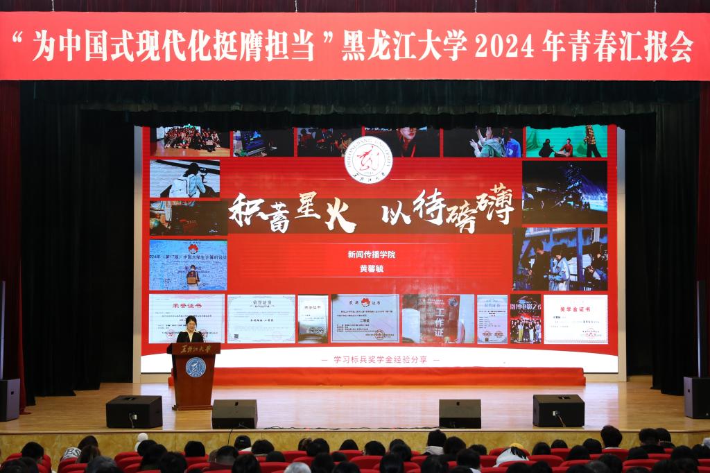 初心如磐担使命,奋楫笃行向未来。为庆祝中华人民共和国成立75周年,深入贯彻落实党的二十大和党的二十届三中全会精神,弘扬先进事迹,彰显榜样力量,引导黑大青年奋力书写为中国式现代化挺膺担当的青春篇章,12月11日下午,我校在音乐厅举办“为中国式现代化挺膺担当”2024年青春汇报会。校党委书记迟宝旭,党委副书记刘凤影,党委常委、统战部部长王培军,党委常委、宣传部部长杨其滨,党委常委、组织部部长王刚出席汇报会并为获奖代表颁奖。