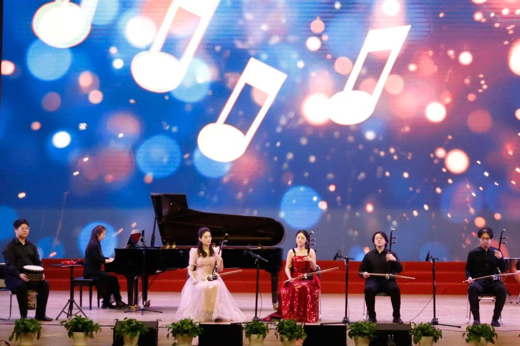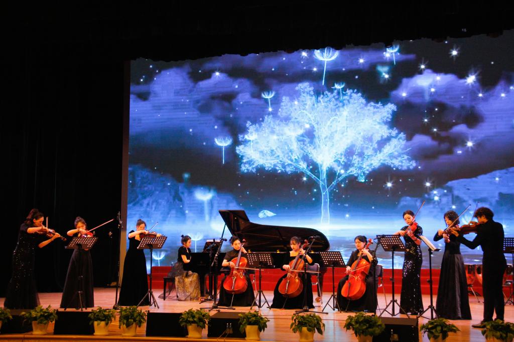 钢琴四手联弹《春节序曲》灵动的音符交织穿梭,春节的热闹欢腾倾泄而出,唤起了大家对春节的美好回忆。二胡重奏《葡萄熟了》,曲调清新优美、风格浓郁独特,再现了人们在葡萄收获季节载歌载舞的动人场面。弦乐重奏《白色巨塔》弓弦相触、波澜起伏,以细腻的旋律娓娓道来深沉情感,带大家进入了别样的音乐世界。