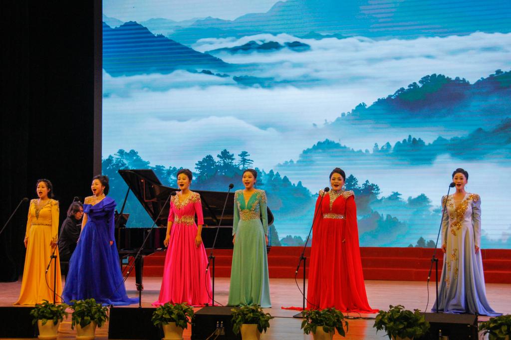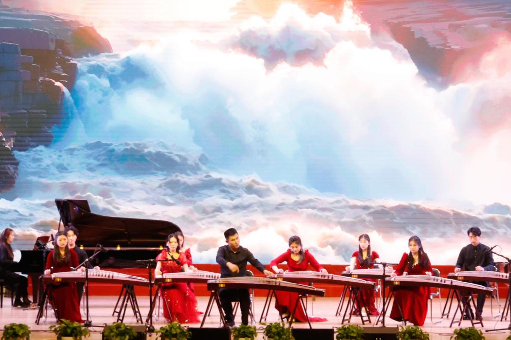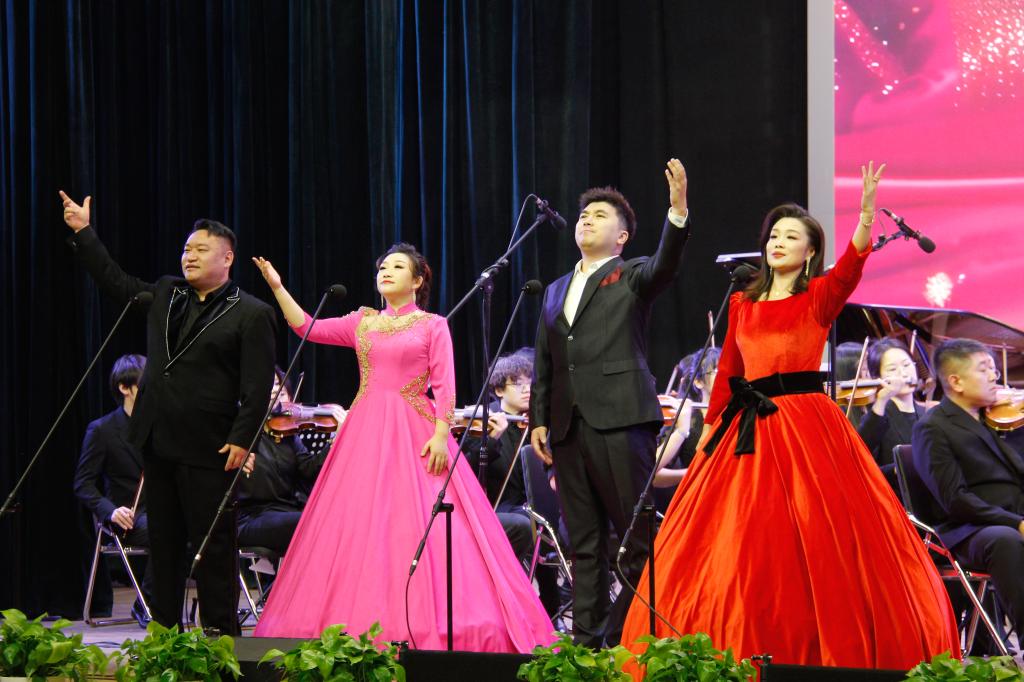 女声独唱《春之声圆舞曲》用清澈动人的歌声勾勒出一幅生机盎然的春之画卷,带大家感受春天的生机与活力。古筝协奏曲《黄河魂》琴声悠扬婉转,旋律跌宕起伏。男声重唱《雪花的快乐》用歌声描绘雪花轻盈飞舞的姿态,带来了别样的悠然与惬意,表达了对美好生活的向往和对广袤土地的热爱。