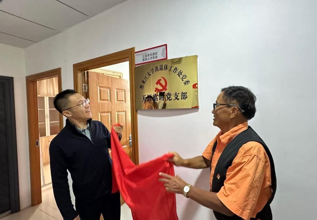 座谈会气氛热烈,迟宝旭为黑龙江大学离退休工作处党委天涯临时党支部和崖州临时党支部揭牌,与会人员共同见证了这激动人心的时刻。临时党支部书记霍灿如、于泉分别发言,他们表示,将做好党员之家建设,离乡不离党,退休不褪色,发挥党员先锋模范作用。