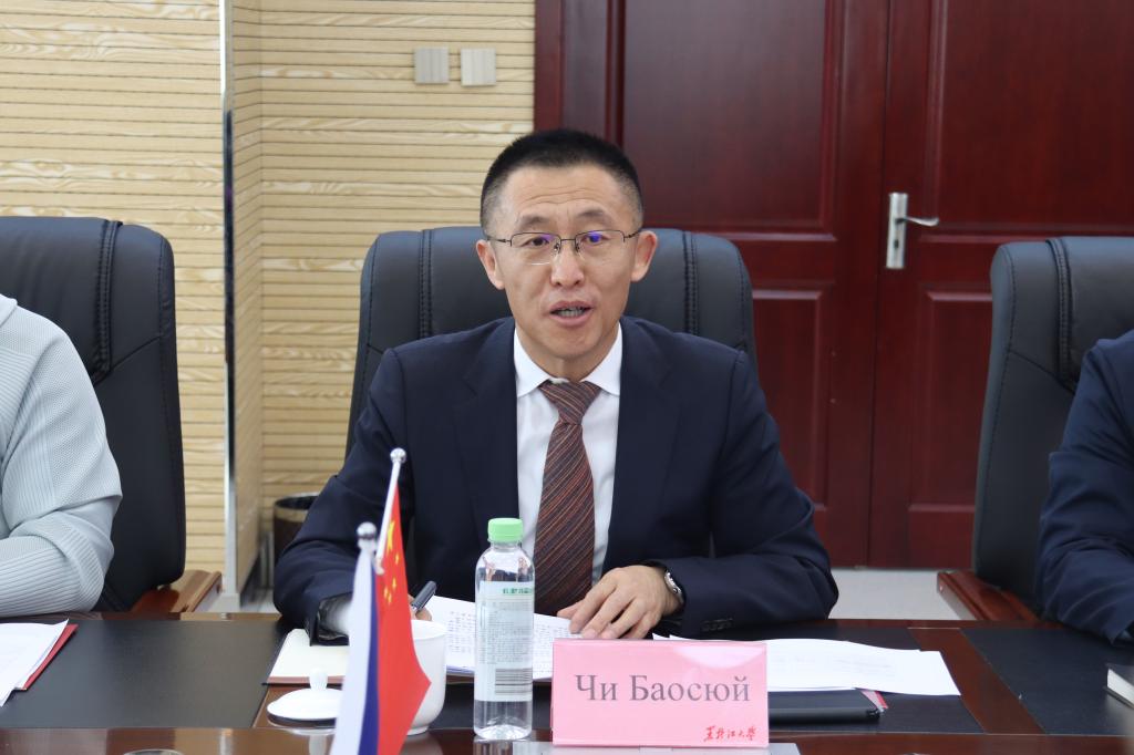 迟宝旭在致辞中向俄方代表表示热烈的欢迎和诚挚的问候。他表示,两校合作历史悠久,成果丰硕,拥有深厚的情谊和巨大的合作潜力,未来,希望双方能继续发挥各自优势,共同探索中俄教育合作的新路径、新模式。他就深化双方合作提出三点建议:一是要立足黑大俄语优势,促进俄语教育合作,培养国际化人才;二是要拓展学术研究交流,增加两校师生流动,推动学术发展与创新;三是要加强文化交流互鉴,丰富语言文化交流,共建友谊桥梁。