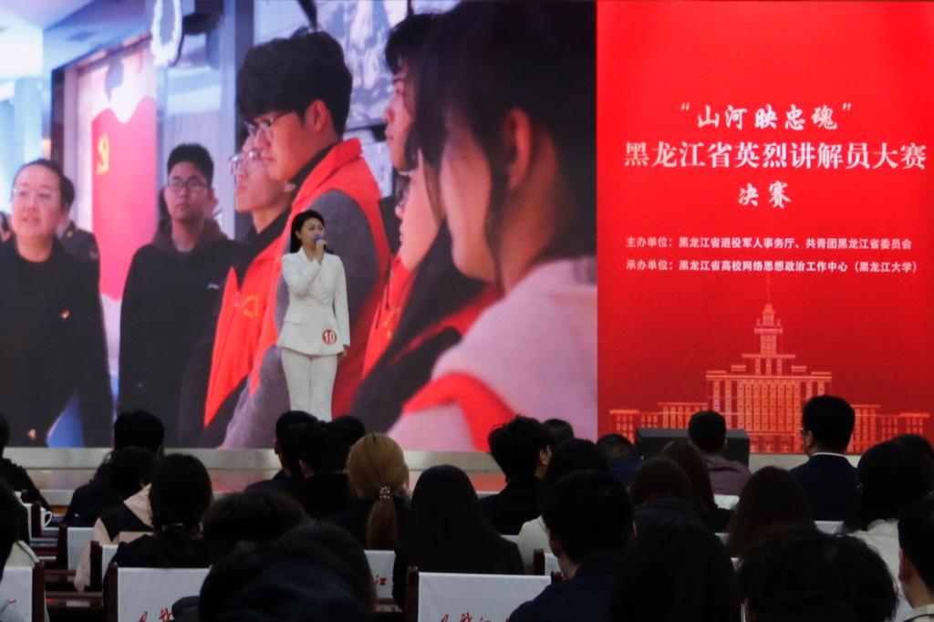 5月9日上午,由黑龙江省退役军人事务厅、共青团黑龙江省委员会主办,黑龙江省高校网络思政中心(黑龙江大学)承办的“山河映忠魂”黑龙江省英烈讲解员大赛决赛在我校主楼一楼报告厅举行。省退役军人事务厅党组成员、副厅长王东平,团省委副书记张涛,校党委副书记刘凤影出席决赛现场,全省各市地退役军人事务局负责人、全省高校师生代表现场观看了比赛。