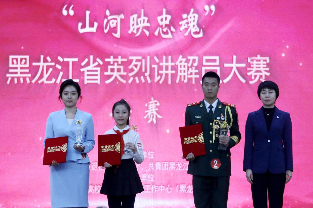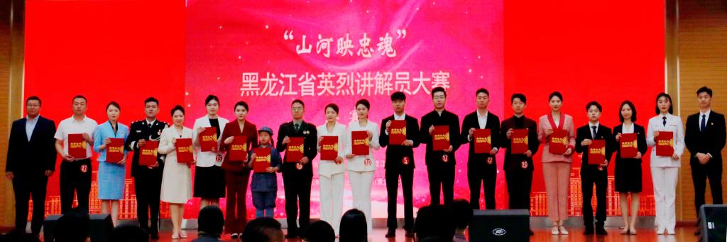 比赛现场,绥化市退役军人服务中心闫烁的《清澈的爱 只为中国》重现了中国戍边战士陈祥荣为祖国牺牲的故事,致敬了戍边战士甘于奉献的精神。哈尔滨烈士陵园孙伊妃的《双枪裂夜 白山黑水间的血色龙吟》展现了东北抗联第十军军长汪亚臣为了保护队友而牺牲自己的不朽形象。牡丹江市马骏纪念馆红领巾讲解员邱汐朵朵的《祖国不会忘记英雄赵一曼》讲述了抗日英雄赵一曼与儿子的感人故事,呼吁青年刻苦学习,全面发展。齐齐哈尔市富裕县退役军人事务局张敬宇的《约定——抗日烈士田绍文事迹》展现了田绍文烈士的英勇事迹,体现了抗日英雄们坚定的信念和牺牲精神。黑龙江大学郝悦的《血泪七三一 黑土忆忠魂》讲述了抗日志士们用生命对抗侵华日军第七三一部队的故事,呼吁广大青年学子弘扬英烈精神,凝聚奋进力量。