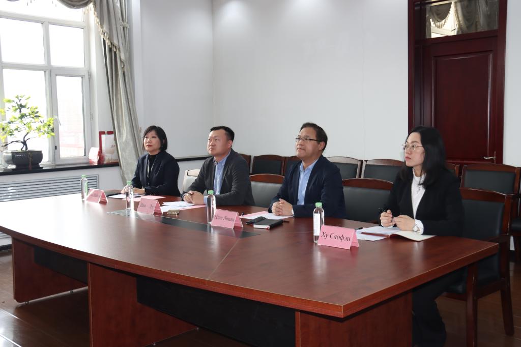 希里诺娃介绍了乌兹别克斯坦国立大学的办学历史和基本情况。她指出,黑龙江大学在对外汉语教材编写方面成就突出,基于两校在语言文化教育方面的互补优势,希望能与黑龙江大学建立合作关系,在设立语言教学中心、师生交流互派、教学资源共享等方面展开合作,推动双方在国际汉语教学领域的共同发展。同时,乌兹别克斯坦国立大学与黑龙江大学在其他多个学科领域高度契合,期待未来两校能在更多领域展开合作,推动两校合作迈上新台阶。