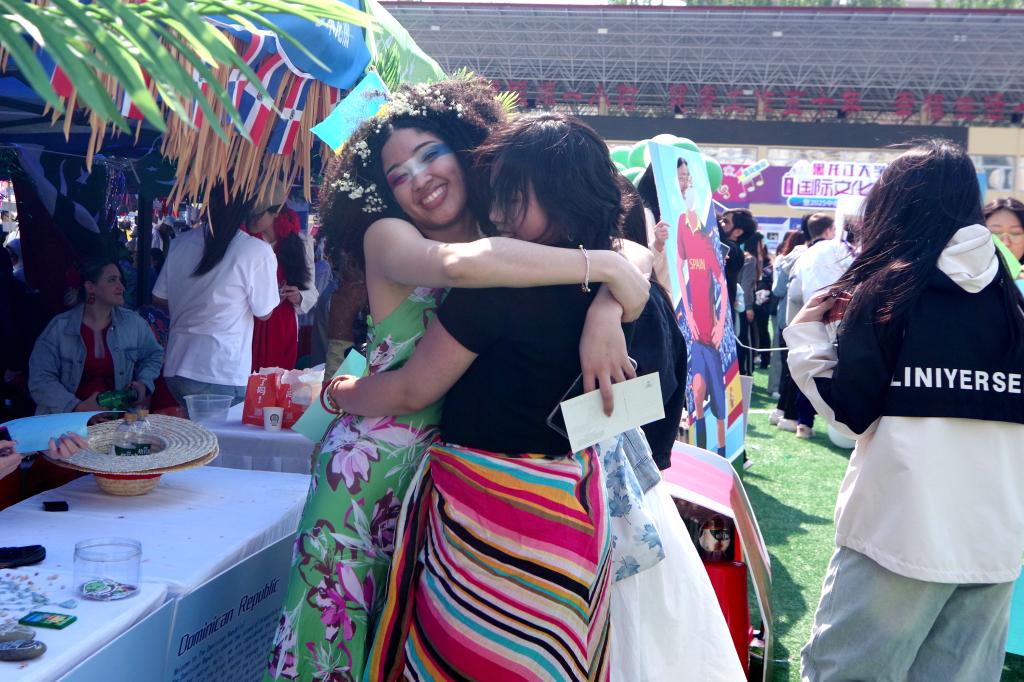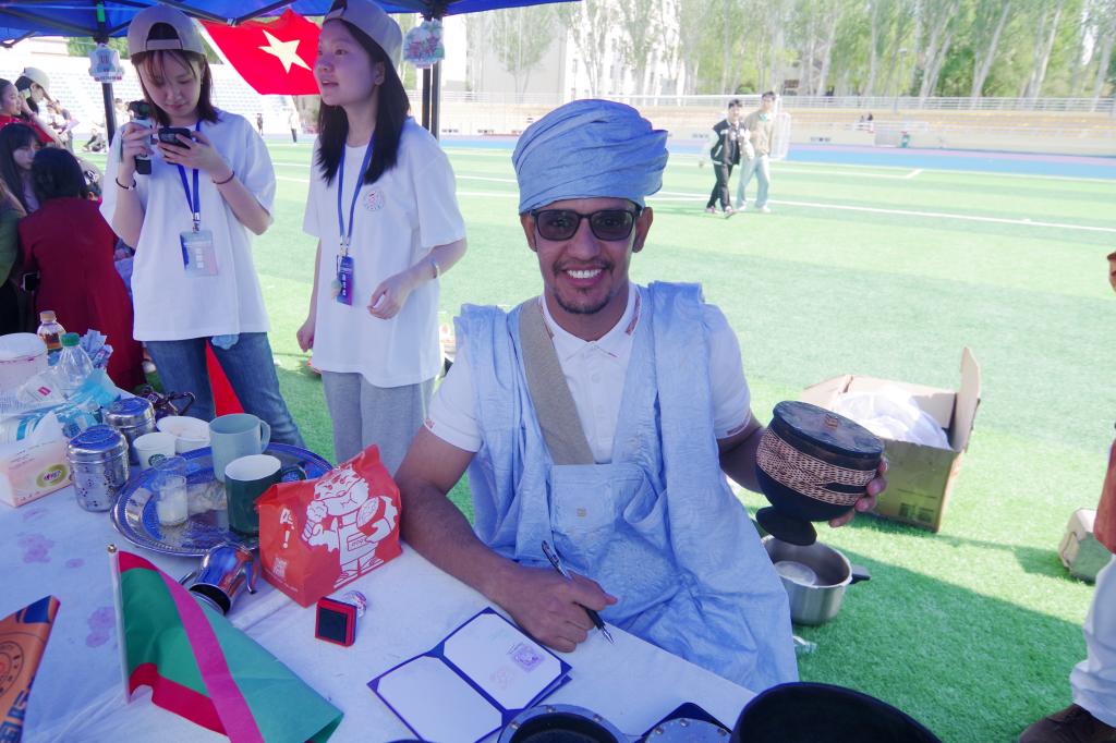 活动现场,近30个国家的48个特色展位热闹非凡。各国留学生身着传统服饰热情讲解,展位上的文化展品琳琅满目,特色美食香气四溢。师生们穿梭其间,或驻足欣赏异国风情,或品尝地道美食,或与留学生热情互动,现场洋溢着欢声笑语,成为多元文化交融的欢乐海洋。