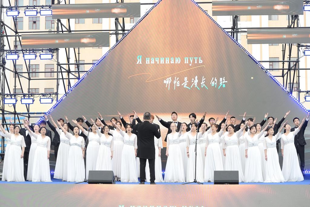 5月24日,“龙蕴华彩•印象黑大”第三届国际文化节暨2025中俄青年交流季活动在我校二号运动场举行。俄罗斯联邦驻哈尔滨总领事馆领事斯凯顶奢・亚历山大、省教育厅对外合作与交流处处长王少松、省人民政府外事办公室欧非处处长吴昊阳、哈尔滨市博物馆馆长张建鑫、伏尔加庄园总经理韦敏芳、秋林格瓦斯校园招聘经理范敏,校长王敬波、党委副书记刘凤影、副校长井立强,兄弟院校留管部门领导、学校各单位负责人以及6000余名中外师生齐聚现场共同见证活动启幕。井立强主持开幕式。