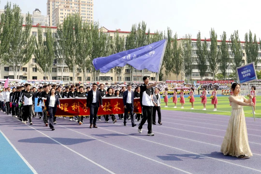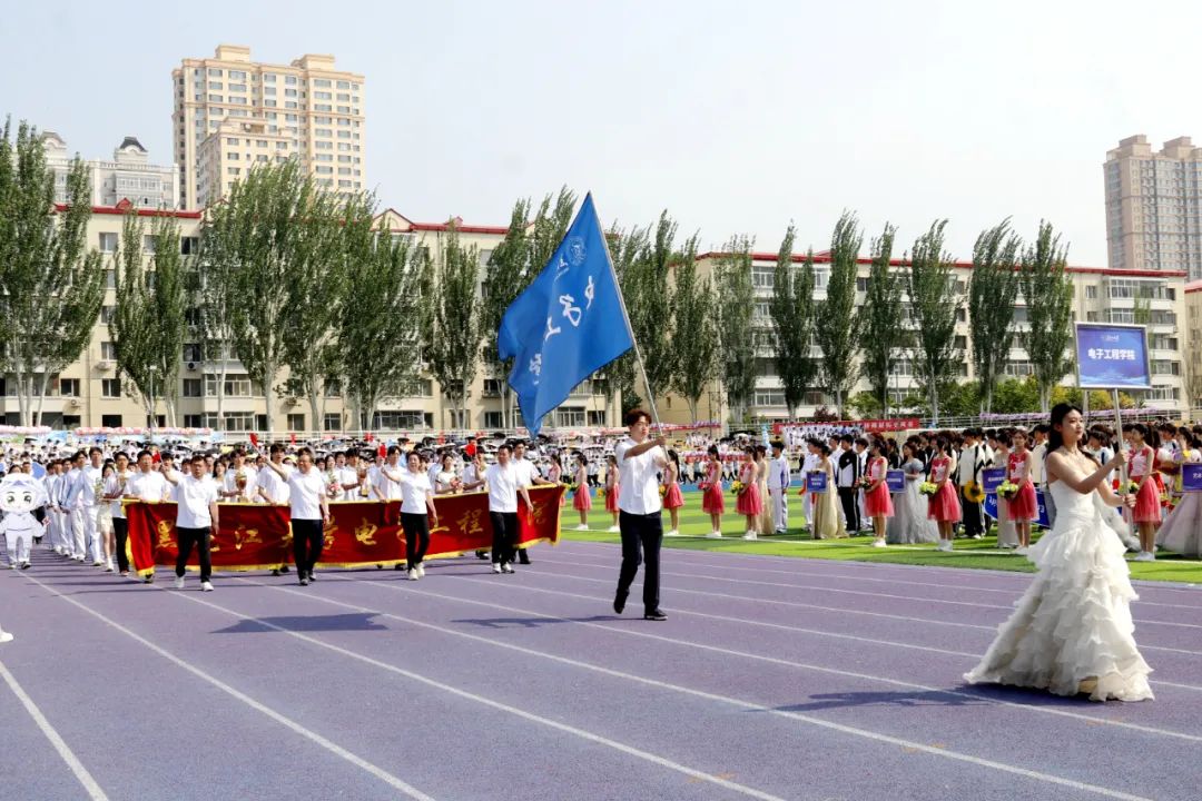 在国旗护卫队、花束队、刀旗队的引领下,全校各单位的运动员代表方阵精神抖擞、口号嘹亮,踏着激昂的旋律,迈着铿锵有力的步伐有序入场并接受检阅,充分展现了黑大师生昂扬向上的精神风貌。