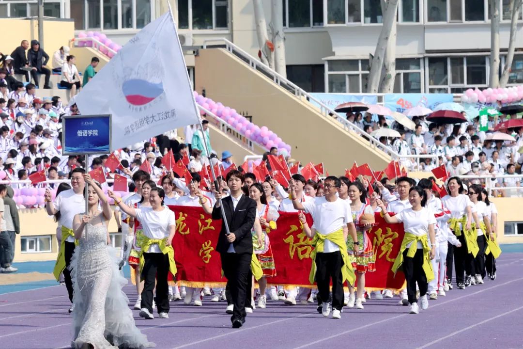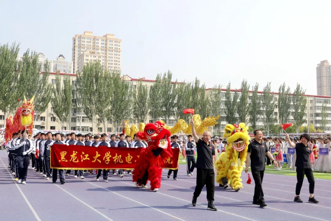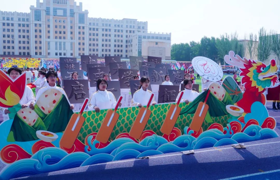 文学院代表队手持绸扇,以翩若惊鸿的戏曲身段演绎中华传统文化精髓,尽显文韵风华。历史文化旅游学院代表队融入端午龙舟元素,以昂扬的面貌、嘹亮的口号,展现了新时代大学生奋勇争先的竞技精神。机电工程学院代表队以活灵活现的舞狮、舞龙登场,通过展现传统技艺的魅力,为赛场增添青春活力。计算机与大数据学院(网络安全学院)代表队以队形变换动态拼写出“我爱黑大”的字样,传递了学院学子对学校的美好祝愿。