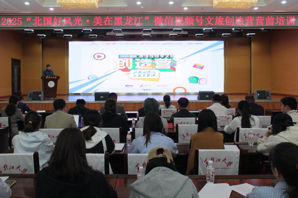 6月10日,2025夏季“北国好风光・美在黑龙江”微信视频号文旅创造营营前培训活动在我校主楼一楼报告厅启幕。本次活动由黑龙江省文化和旅游厅联合我校、哈尔滨工业大学、哈尔滨师范大学、哈尔滨石油学院共同举办。黑龙江省文化和旅游厅党组成员、副厅长钟华,我校副校长魏影等嘉宾出席活动。来自四所高校的65名本硕博学员,哈尔滨、牡丹江、佳木斯等地市文旅部门代表及头部景区负责人共100余人参会。活动由新闻传播学院院长朱志勇主持。