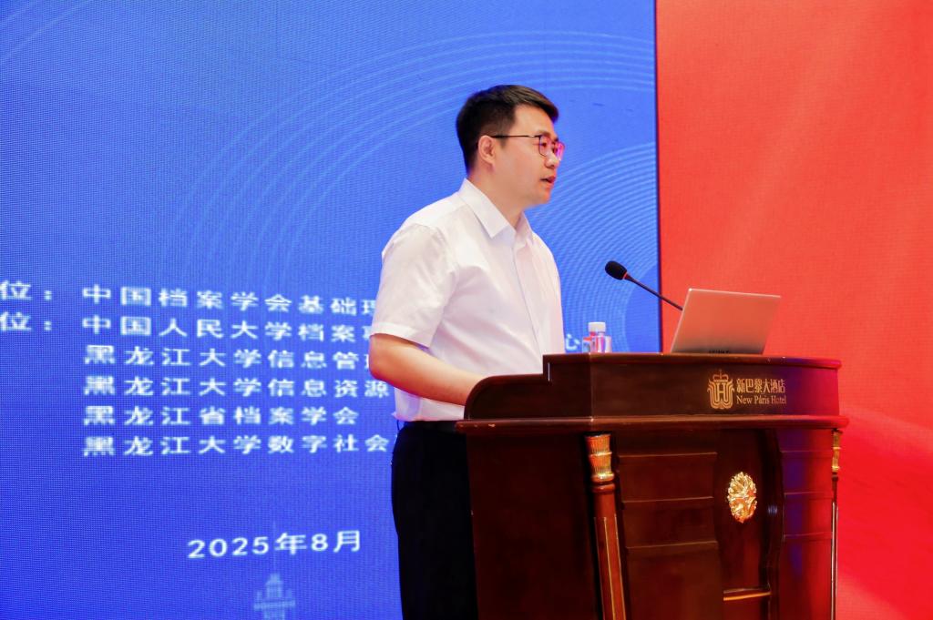 8月8日,中国档案学会档案学基础理论学术委员会换届大会暨2025年档案事业发展论坛在哈尔滨举办。本次会议由黑龙江大学信息管理学院、中国档案学会档案学基础理论学术委员会联合主办,中国人民大学档案事业发展研究中心、黑龙江省档案学会、黑龙江大学信息资源管理研究中心、黑龙江大学数字社会研究院等单位协办。来自全国各高校、学术期刊和相关单位的90余名代表参加了会议。