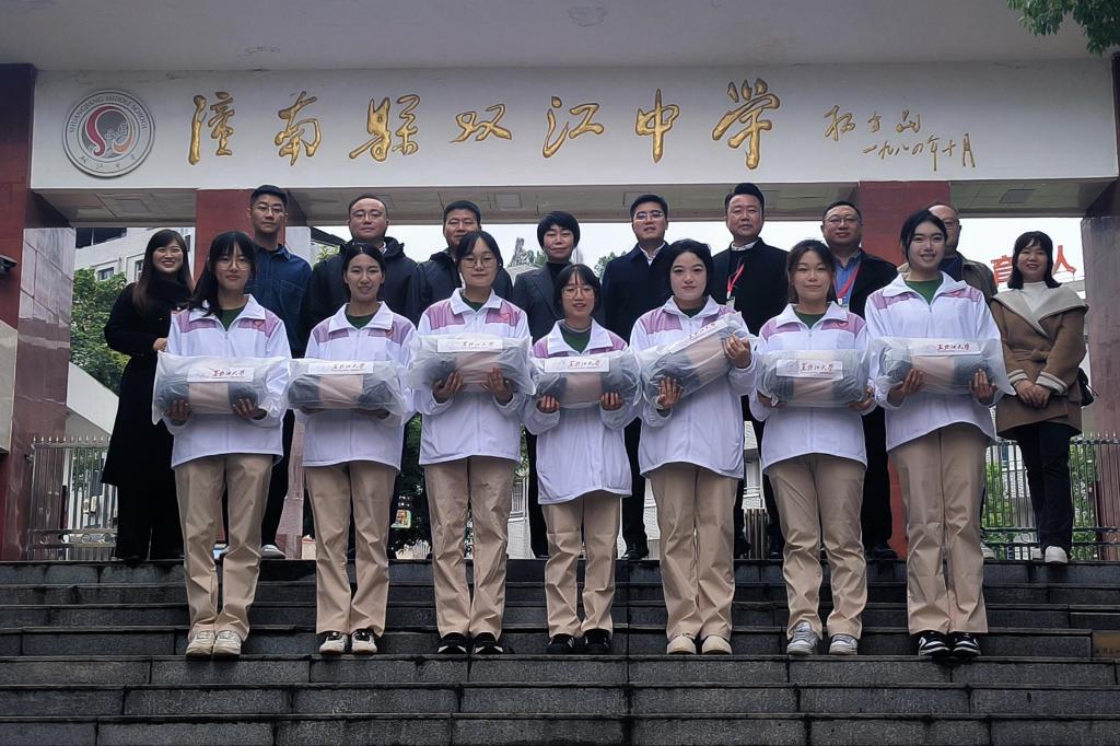 在潼南区双江镇初级中学,刘凤影一行深入校园,参观了解双江中学办学历史与特色展区,并与支教团成员深入交流,详细询问教学工作、生活保障及成长收获。在支教团授课班级,学生代表通过合唱黑龙江大学校歌《岁月如歌》、朗诵手写明信片、赠送感谢卡片表达对我校师生的敬意。随后,实地走访志愿者宿舍,了解日常住宿生活、课后备课情况,并送上毛毯等慰问品,传递学校的温暖关怀。刘凤影勉励支教团成员:“要以‘躬耕教坛’的初心扎根基层,用‘勤学笃行’的态度赋能成长,在乡村教育振兴中传承黑大精神、彰显黑大学子的使命担当。”