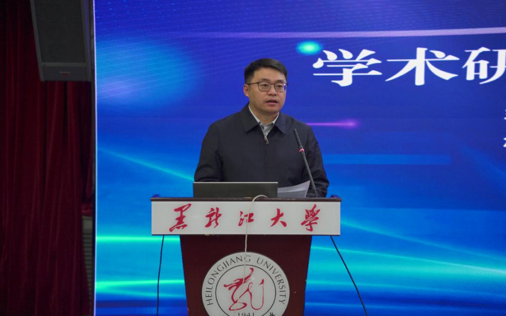 崔本强代表黑龙江大学向与会专家学者致欢迎辞,并介绍了学校的发展历程、学科建设成果以及网络空间安全学科的发展情况。