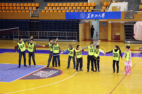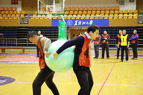 联谊会在我校幼儿园教师表演的蒙古族舞蹈《欢乐草原》中拉开帷幕。在舞蹈带来的欢乐氛围中主持人宣布游戏环节正式开始,本次联谊会的游戏共设有“踩气球”、“传递呼啦圈”、“运动接力”、“五角一元”、“运送气球”等五个项目。在场观众根据入场时领取的队服颜色分为红、绿、蓝、黄四个队伍参加游戏。场上选手奋力拼搏,场下观众加油鼓劲。“踩气球”环节中蓝队采取灵活战术取得了成功。“传呼啦圈”项目中,黄队仅以4秒之差,险胜绿队。“运动接力”中,红队老师齐心协力,配合默契,最终取得胜利。在“五毛一块”游戏中黄队通过出色的表现获得最终胜利。