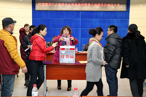 12月26日下午,民盟黑龙江大学委员会换届选举暨第八届委员会成立大会在我校主楼226会议室举行。民盟省委副主任委员杨永道,民盟省委组织部王岩峰,我校纪委书记荣盘祥,宣传部、统战部相关负责人,民革黑大支部、九三黑大支社、民进黑大支部代表,以及来自哈尔滨工程大学、东北林业大学、哈尔滨理工大学、省科学院和省水利厅等在哈兄弟单位民盟支部代表出席会议。