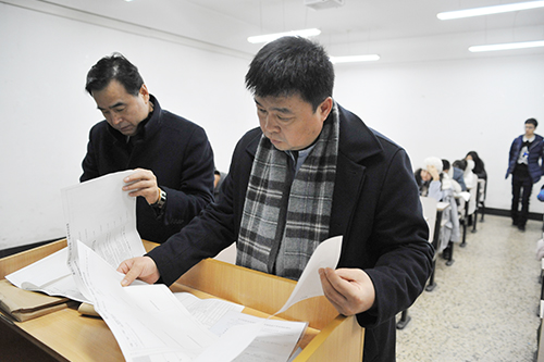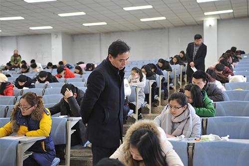 据悉,黑龙江大学2015至2016第二学期共开展考试1660门,有4945个考场,考期参与监考的教师达4297人次。为严肃考试纪律,我校采取六项常态举措,第一,常规闭卷考试全安排在汇文楼和三号教学楼,便于电子监控和集中巡考,有利于保证考试纪律;第二,所有专业类课程考试的监考实行跨院监考,促进相互督促和学习,减少熟人聊天的机会;第三,由教务处和学工部共同作为考务办成员,共同巡考并处理学生违纪行为,有利于准确把握违纪处理的尺度,并充实巡考人力;第四,每学期考前学院组织召开考前“三会”,对学生、监考及任课教师的考务工作进行布置,并重申纪律要求;第五,通过校园网、黑大教务微信公众号、大屏幕等手段宣传考试纪律;第六,对考试违纪行为,第一时间作出处理,并第一时间发布公共信息进行公示。(摄影:杨万里)